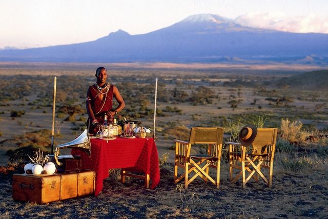 Een sundowner met de majestueuze Mount Kilimanjaro als decor is een onmisbare ervaring. Weinig locaties bieden zo'n geweldige kans om, onder het genot van een hapje en een drankje, die ideale zonsondergangfoto in Afrika te maken, en dan heeft u in dit geval ook nog eens als bonus de Kilimanjaro op de achtergrond.