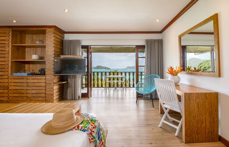 Deze suites, bestaande uit 1 royale kamer van ca. 65 m², liggen verspreid tegen de heuvel en in de tuin, allemaal met een schitterend uitzicht over de oceaan. In de verte ziet u zelfs de eilanden St. Pierre en Curieuse. De kamers zijn ideaal voor koppels die op zoek zijn naar rust en privacy tijdens hun strandverblijf. Slaapkamer met kingsizebed, een zitgedeelte en een badkamer met bad en regendouche. Alle suites zijn voorzien van plafondventilator, airconditioning, een minibar en koffie-theezetfaciliteiten, televisie, telefoon en kluisje. Groot balkon of terras met zithoek. Er kunnen maximaal 3 personen verblijven.