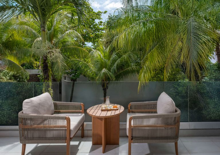 Deze kamers (ca. 32 m²) liggen op de begane grond en zijn voorzien van een terras met stoelen en een tafel. Alle voorzien van een badkamer met regendouche en verzorgingsproducten. Daarnaast beschikken ze over airconditioning, een televisie, telefoon, kluisje, minibar en koffie-/theezetfaciliteiten. Dagelijks wordt er kosteloos mineraalwater op de kamer aangeboden. Geschikt voor maximaal 2 volwassenen en 1 kind t/m 11 jaar of 3 volwassenen. Bij een indeling met twee eenpersoonsbedden is er geen sofabank aanwezig. Aangrenzende kamers zijn beschikbaar.