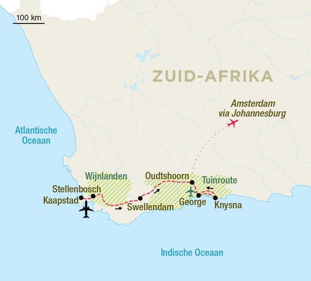 Niet lang nadat Jan van Riebeeck zijn voet aan wal zette in Kaapstad, begon men met het verbouwen van wijndruiven, waarmee de basis werd gelegd voor Zuid-Afrika’s bloeiende wijnindustrie. Tegenwoordig behoort het land tot de beste wijnproducenten ter wereld. Tijdens deze reis ontdekt u enkele van de mooiste wijnregio’s en krijgt u volop gelegenheid om de lokale wijnen te proeven. In de directe omgeving van uw accommodaties geniet u van een perfecte harmonie tussen verfijnde wijnen en gastronomische gerechten. Zo ervaart u niet alleen de uitzonderlijke Zuid-Afrikaanse wijnen, maar ook het rijke culinaire en natuurlijke erfgoed van dit bijzondere land. Ga op culinaire ontdekkingstocht in Kaapstad en de indrukwekkende wijnhuizen met fascinerende geschiedenis van de wijnstreek. Daarnaast geniet u van de adembenemende natuur langs de Tuinroute, spectaculaire bergpassen en een imposante kustlijn.